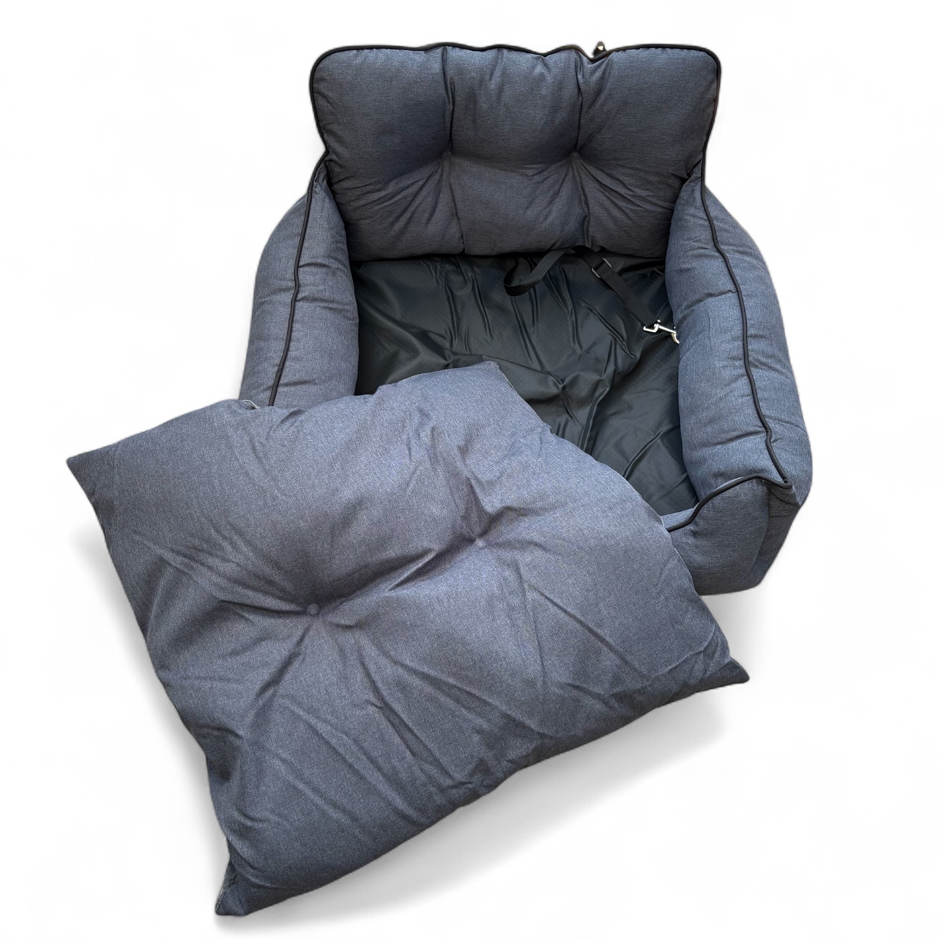 Bilsæde eller autosæde til din kære hund. Sædet kan anvendes på bagsæde eller forsædet i bilen eller som hundeseng i hjemmet.