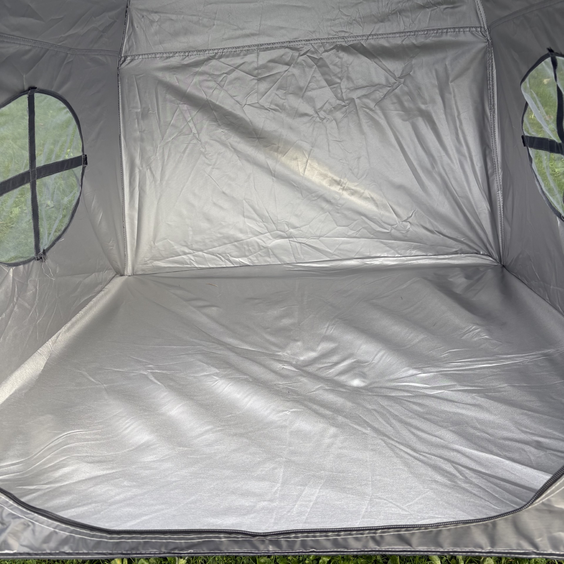 Teltet giver behagelig skygge i solen eller som telt i regnen, uanset hvor i befinder jer. Netvinduerne i siderne af teltet sikrer en god udsigt og ventilation, så din hund kan nyde teltet i ro og mag.
