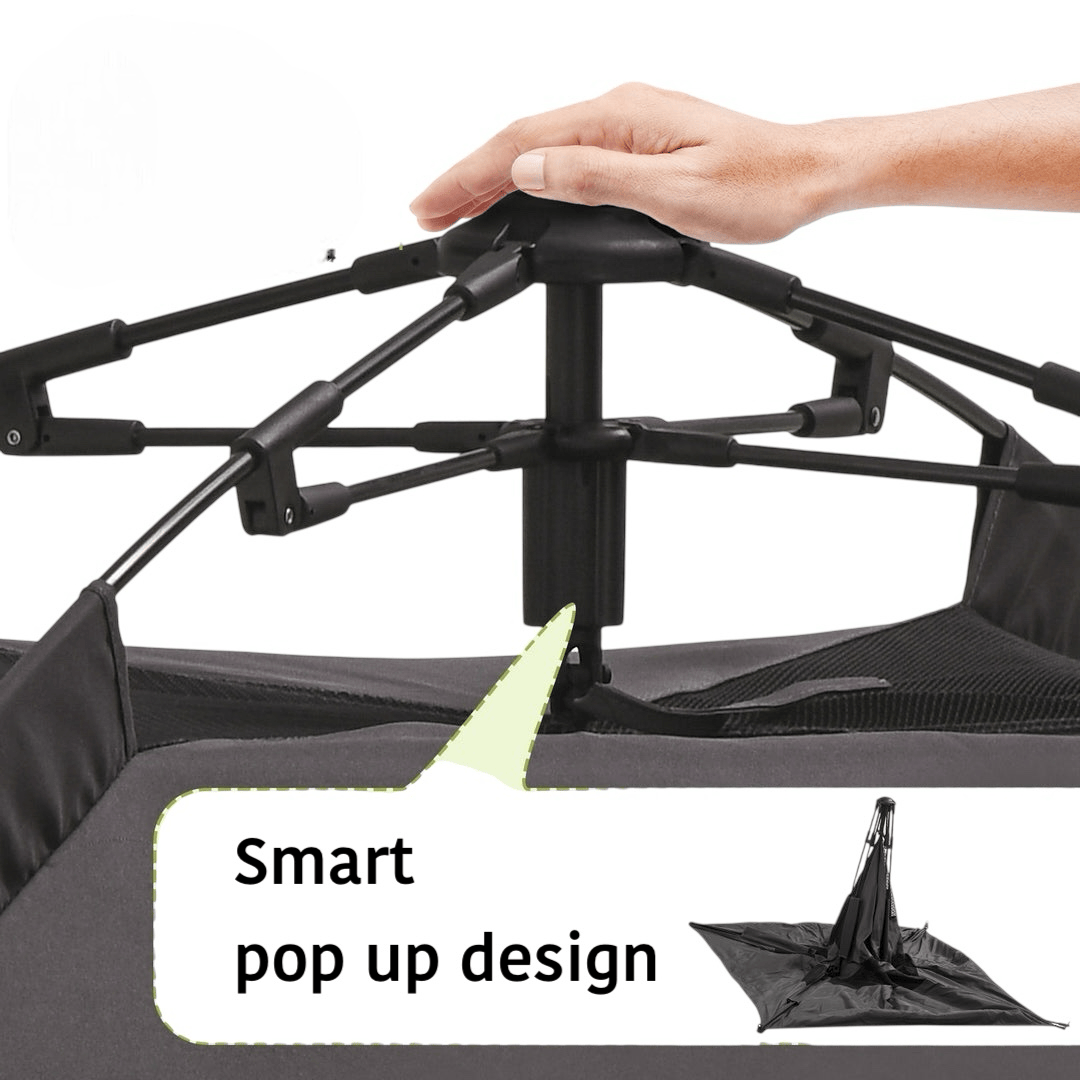 Det lette og praktiske teltdesign, gør det nemt at sætte teltet op og tage det ned igen – helt uden bøvl – takket være det smarte håndtag i toppen. Den robuste konstruktion giver både tryghed og privatliv for din hund og egner sig perfekt til både indendørs og udendørs brug.